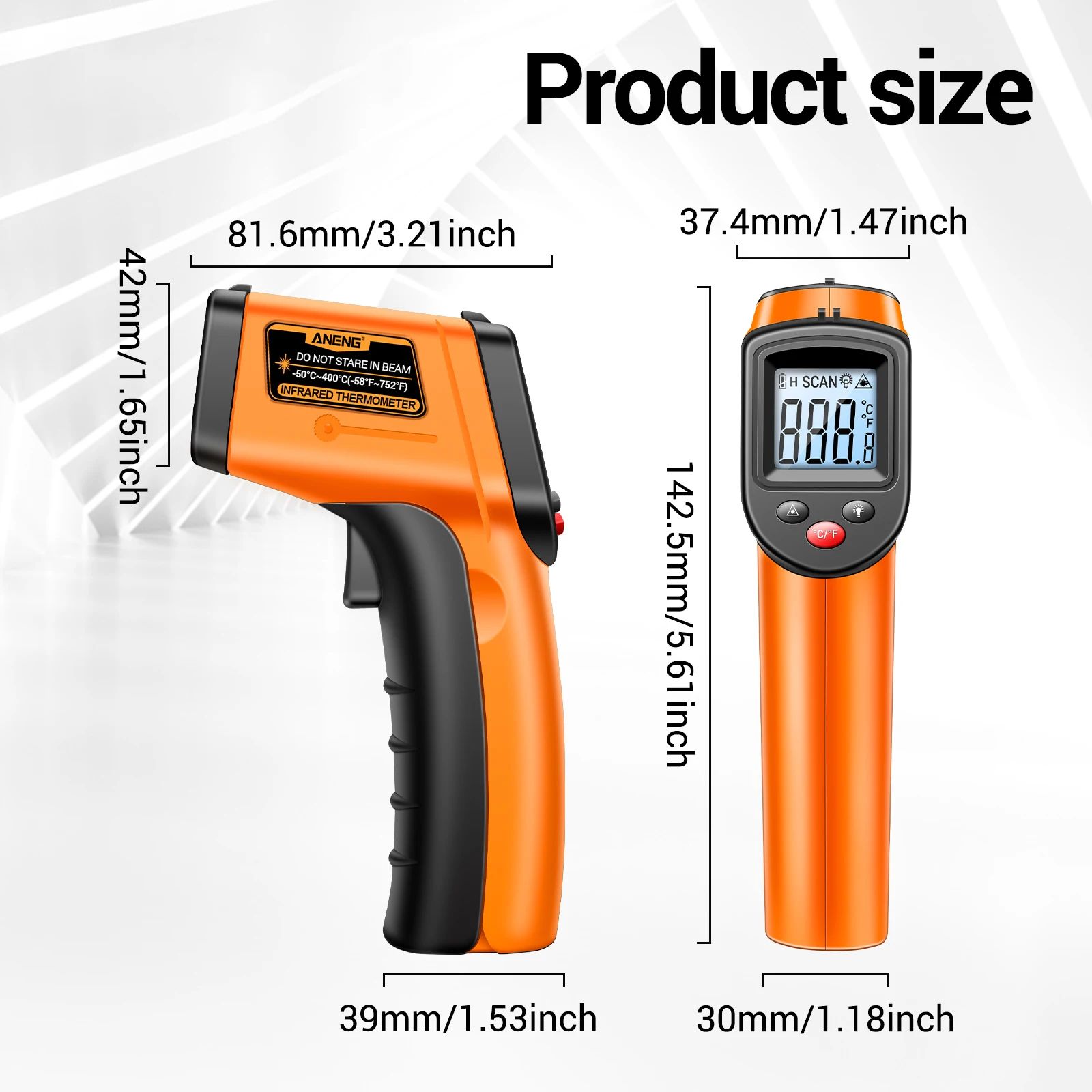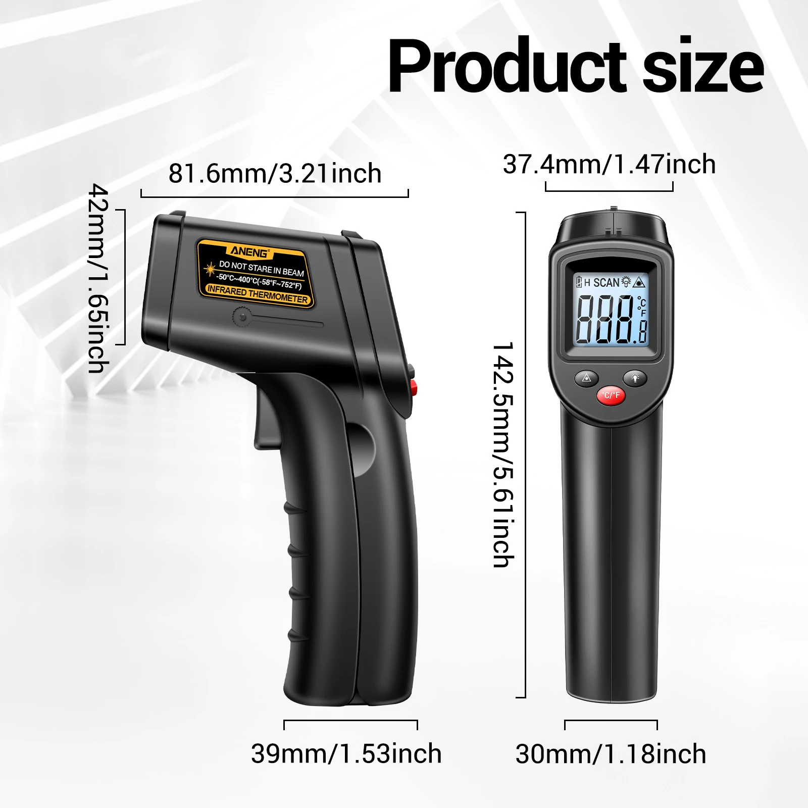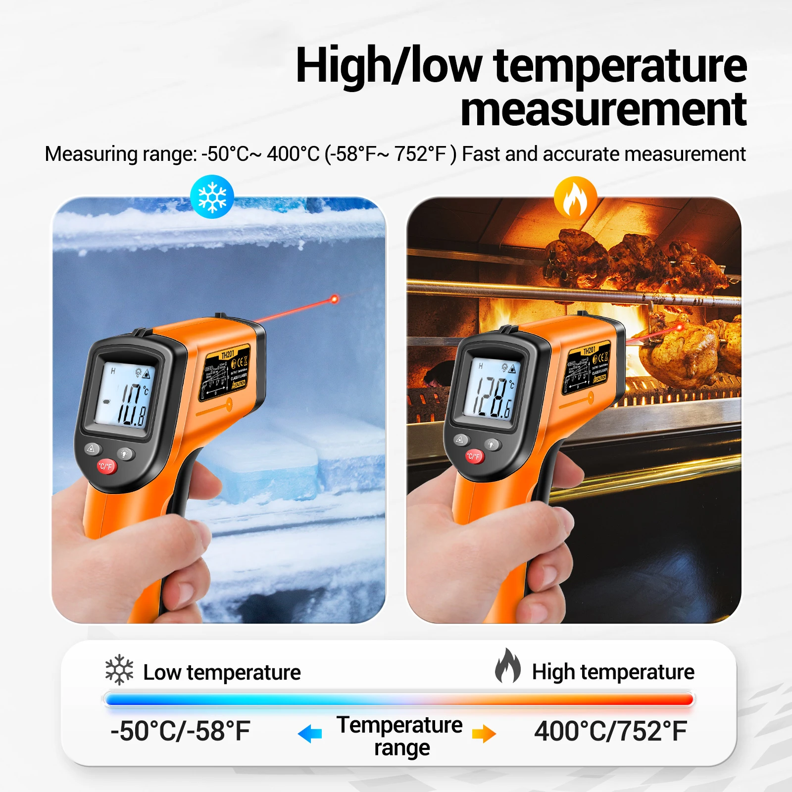 діапазон від -58℉ до 752℉ (від -50℃ до 400℃), підтримує перемикання
