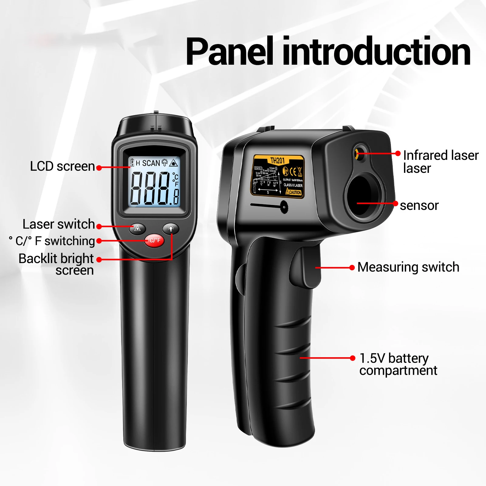 TH201 Інфрачервоний термометр-гігрометр точно вимірює температуру та рівень вологості Інфрачервоний лазерний портативний промисловий тест
