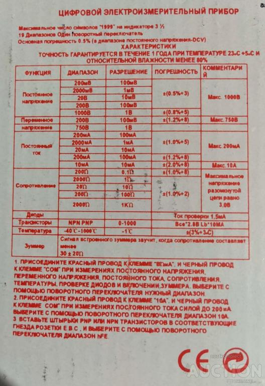 тип питания : батарея 9V (6F22)