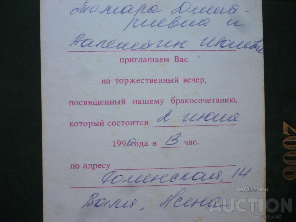 Лицевая часть открытки Приглашение