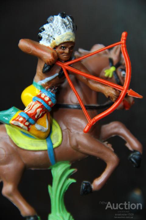 переделанная резиновая фигурка производства ГДР . Цена только за фигурку индейца с луком !! Резиновая лошадь дана для наглядности и продается отдельно.