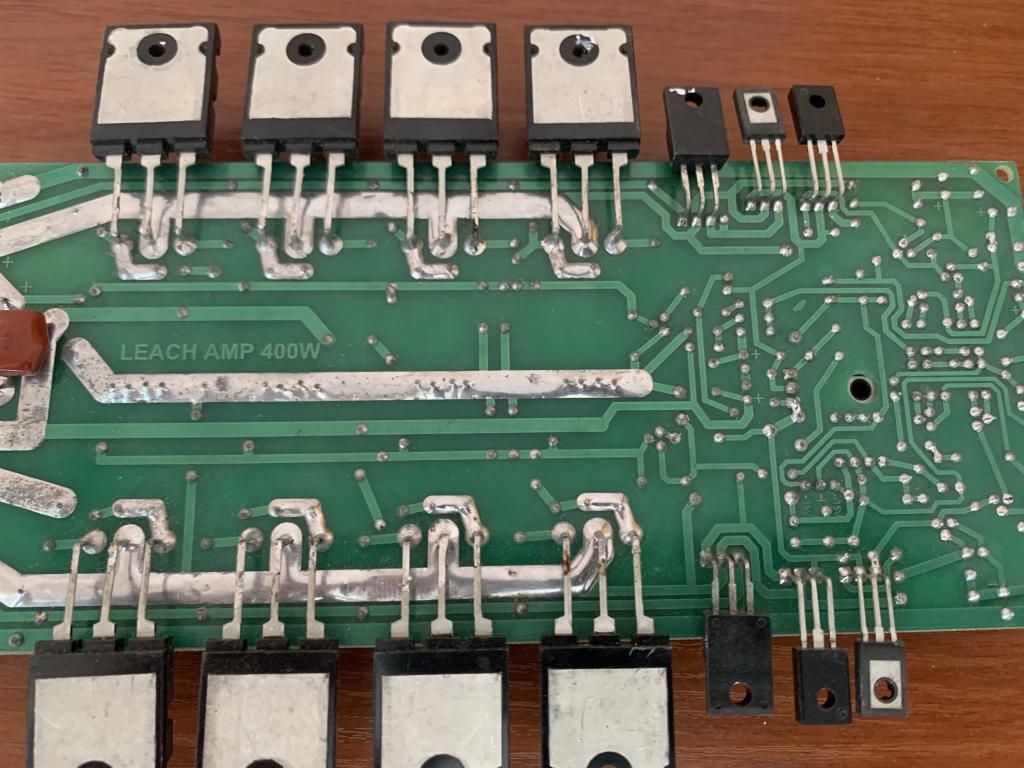 Мощный усилитель мощности низкой частоты 400Вт, 4 - 8 Ом, LEACH, на 4-х парах выходных транзисторов 2SC5200+2SA1943 ОРИГИНАЛАХ.