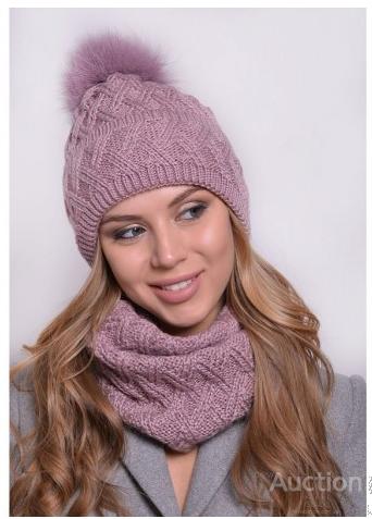 Вязаная женская шапка бубоном, снуд. Вязанный теплый набор из качественных материалов,шапка с отворотом двойная на флисовой подкладке, именная лейба,и хомут аналогичной вязкой, узор в виде ромба. огромный ассортимент цвета. Шапка декорирована а бубоном из натурального меха песца. В комплекте: женская шапка, хомут.