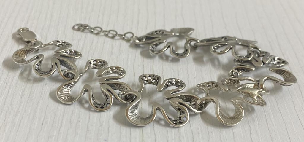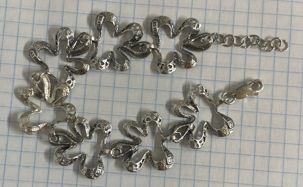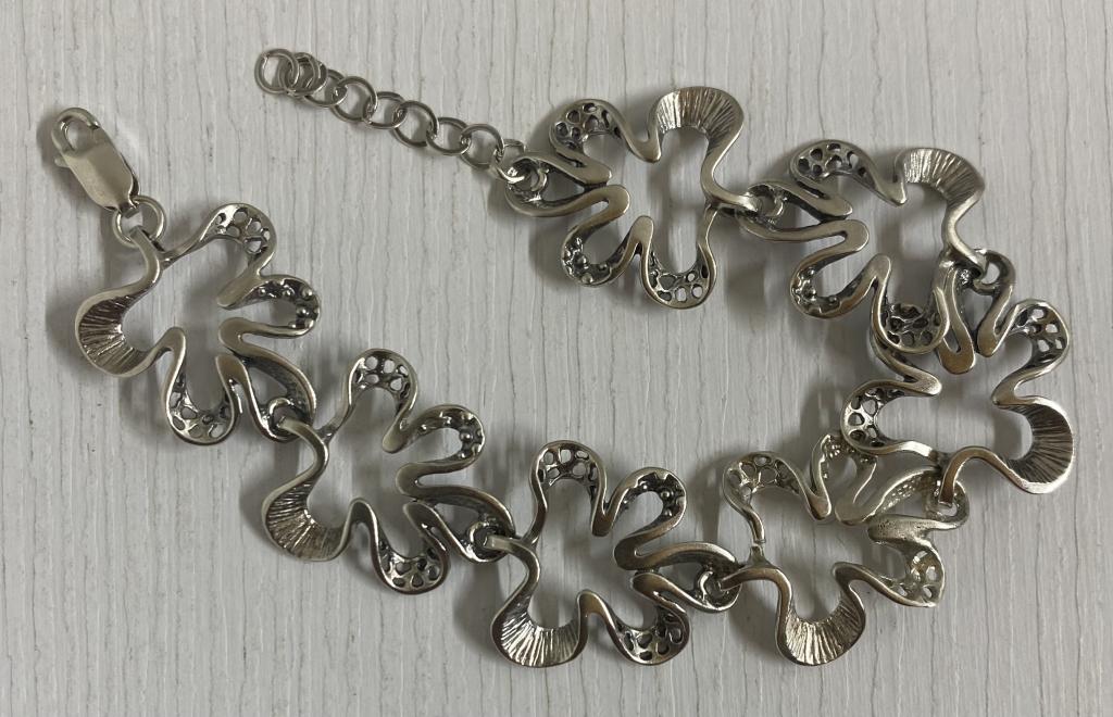Срібло 925 проба.Вага виробу 13,26 грам.Розмір видно на фото в клітинку.Довжина 16-19 см.