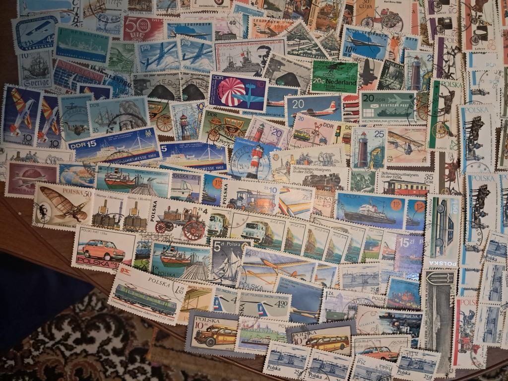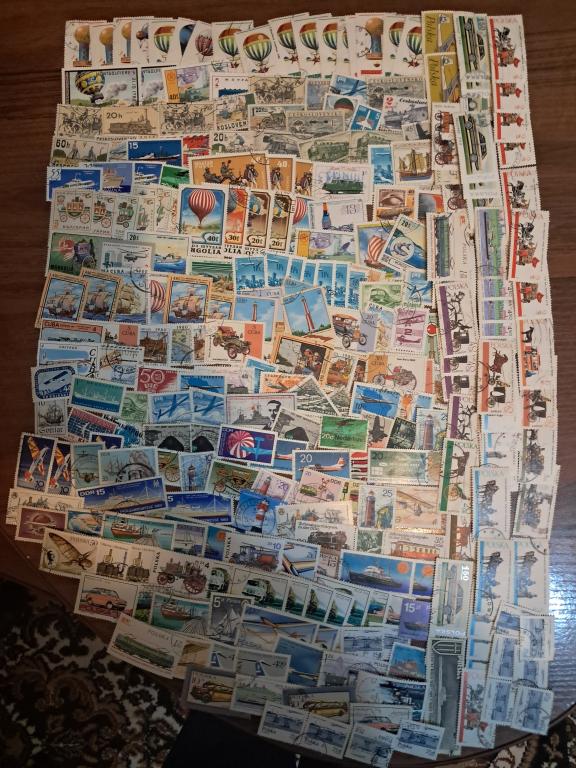 900 гашених марок транспорт. Є повтори. Стан марок на фото.