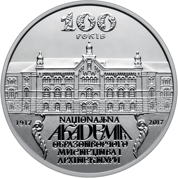 100 років Національній академії образотворчого мистецтва і архітектури 5 грн.,срібло НБУ, 2017р.
