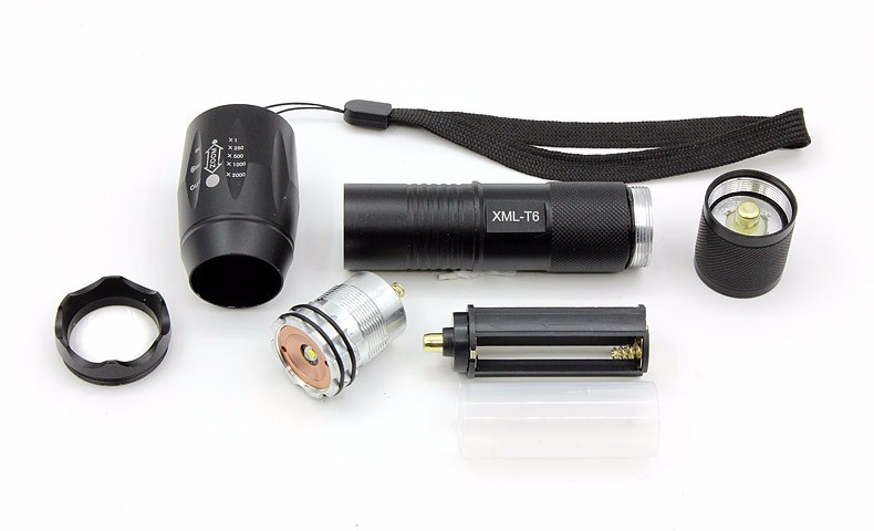 Корпус фонарика сделан из высококачественного алюминиевого сплава , имеет очень прочную конструкцию. Влагозащищен подходит для неблагоприятных погодных условий, за исключением дайвинга. Имеет 5 режимов и фокусировку луча.