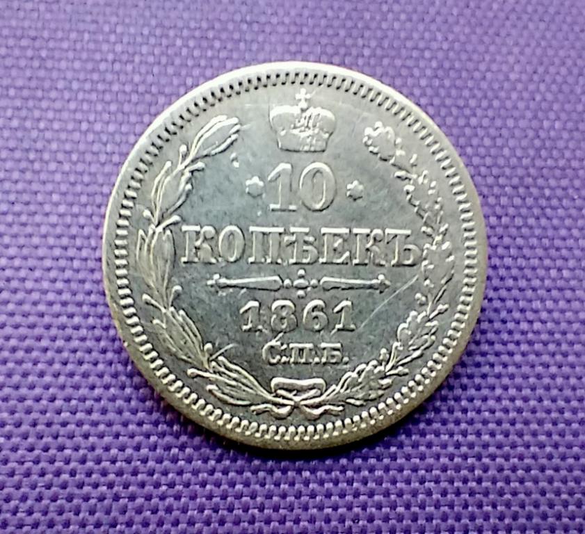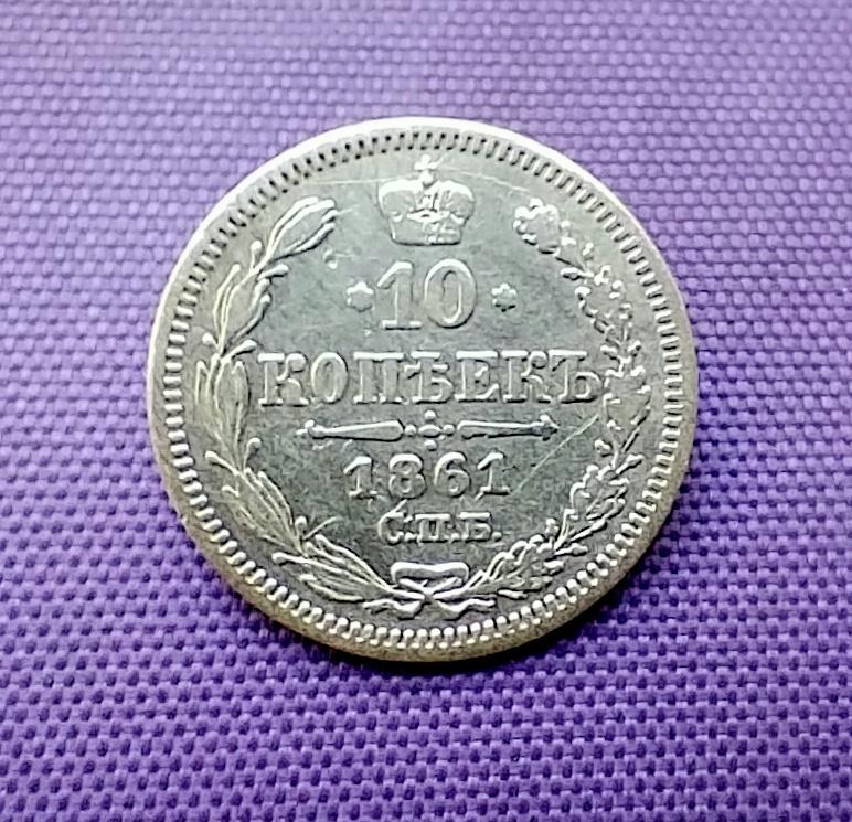 10 копійок 1861 року, ФБ, гурт пунктир, стан монети по світлинах
