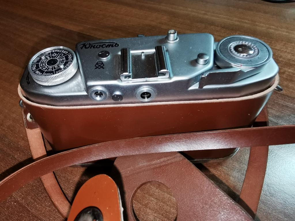 Фотоапарат "Юность", в гарному зовнішньому та технічно в справному стані. З оригінальним шкіряним чохлом. Фотоапарат пройшов професійне обслуговування.