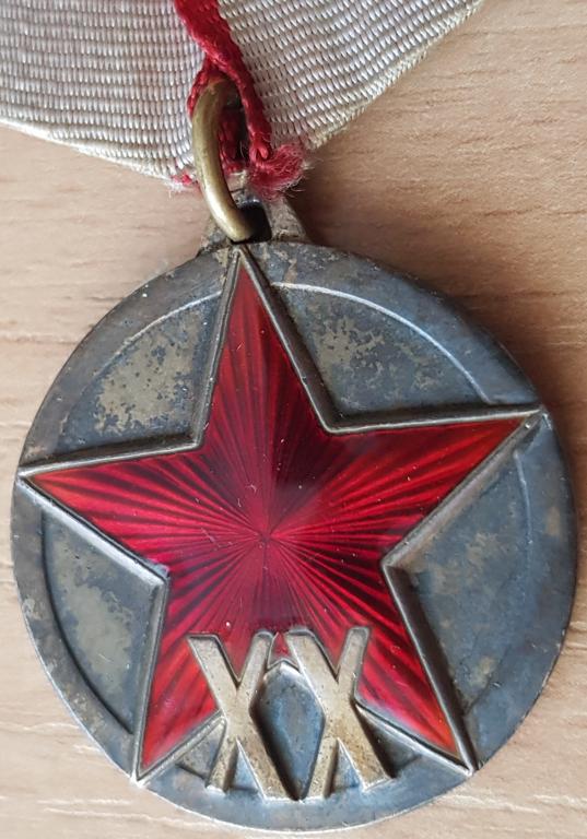 ХХ лет РККА, состояние практически неношена, минимальные следы ношения, у основания луча 9 небольшая царапина, на фото показал, родная патина, позолота, промзвено родное, от квадро. Отличное пополнение коллекции.