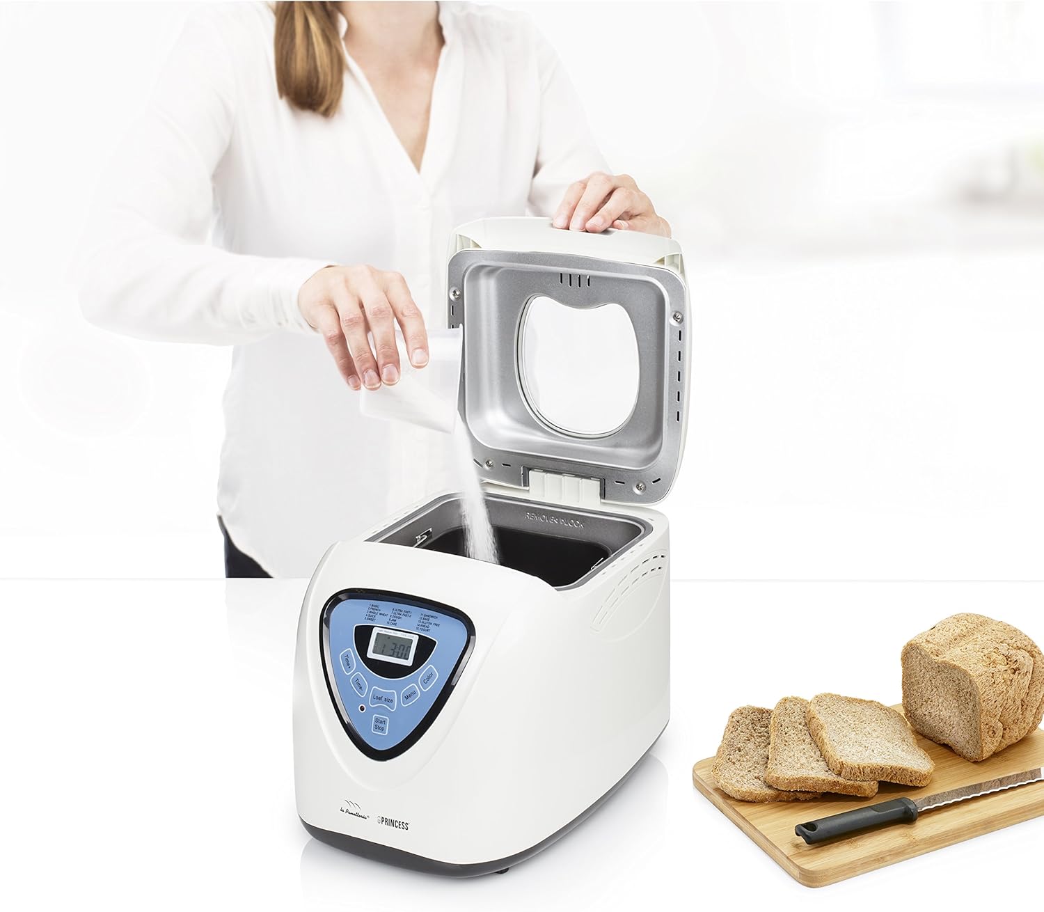 Прокидайтеся щоранку з запахом свіжоспеченого хліба. Домашнє приготування стало полегшеним завдяки повністю автоматичному хлібопекарському принцесі 152006. Завдяки 15 заздалегідь запрограмованим варіантам випічки та цифровому таймеру ви можете ввечері помістити інгредієнти у хлібопічку та прокинутися до смачного теплого домашнього хліба. Виберіть свою власну ідеальну програму випічки Хлібопічка Princess робить випічку хліба легкою та швидкою. Додайте всі інгредієнти у форму для випікання з антипригарним покриттям і оберіть відповідну програму. З 15 попередньо запрограмованими програмами завжди є програма для вашого виду хліба. Якщо ви хочете відрегулювати налаштування, просто скористайтеся цифровою панеллю управління. Можна навіть встановити колір скоринки. Ідеально підходить для алергії або спеціальних дієт Використовуйте власні чисті інгредієнти і готуйте здоровий хліб. Для людей, які страждають від непереносимості глютену або алергії, хлібопічка Princess - це порятунок. Випікайте свіжий і простий хліб без глютену завдяки спеціальній програмі випічки без глютену. Від бананового хліба до йогурту Хлібопічка Princess може спекти хліб до 900 грам. Це близько 14 скибочок хліба, достатньо для всієї вашої родини. Приготуйте соковитий банановий хліб або смачний житній хліб. Хлібопічка також підходить для желе, йогурту, тістечок і навіть рису та рисового вина. Широкий вибір попередньо запрограмованих налаштувань За допомогою простого відображення хлібопічки Princess можна вибрати найкращу програму. Існує 8 налаштувань для різних видів хліба, таких як цільнозерновий, солодкий, французький, без глютену та три надшвидкі налаштування. Варення, йогурт, пиріг і просто замішування або піднімання також можливі. Свіжий хліб вранці За допомогою цифрового таймера ви можете додавати інгредієнти до 13 годин, перш ніж ви почнете випікати. Встановіть таймер так, щоб він почав випікатися о 6 годині ранку, а до 9 годин у вас буде свіжий і теплий хліб. Завдяки функції збереження тепла ваш хліб може залишатися теплим до 60 хвилин. Що в коробці: Хлібопічка Tristar, форма для випікання з антипригарним покриттям, мірна чашка, мірна ложка, знімний гачок для тіста, засіб для зняття гачка для тіста Причини вибору хлібопічки Tristar: Гнучка ємність від 680 до 900 грам для 8-14 скибочок хліба Цифровий таймер і функція збереження тепла для свіжого хліба Термостійкий корпус та захист від перегріву Форма для випікання, що легко прибирається, з антипригарним покриттям 15 запрограмованих програм випічки та безглютенової програми