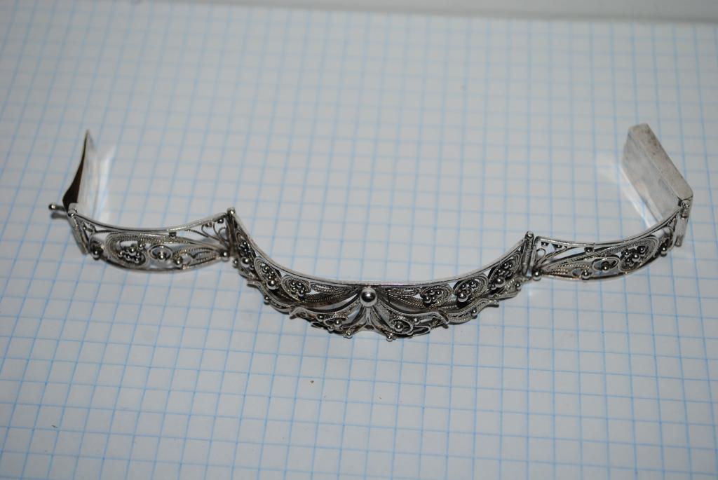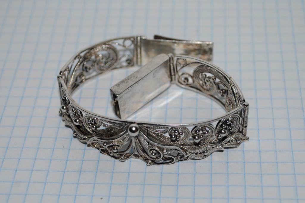 Серебро.Стоит 925 проба.Вес изделия 21,48 грамм.Размер виден на фото в клетку.Длина 18 см.