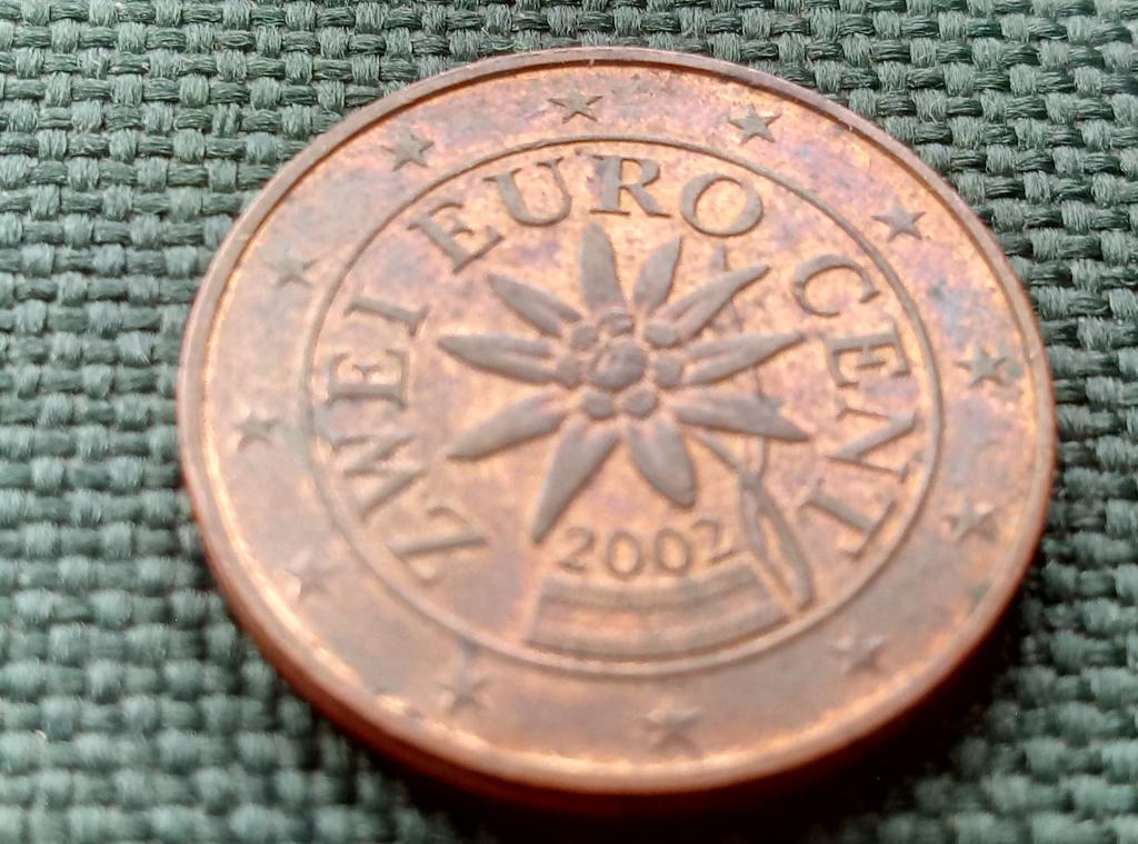 Монета Австрии 2002 года номиналом 2 евроцента из обихода