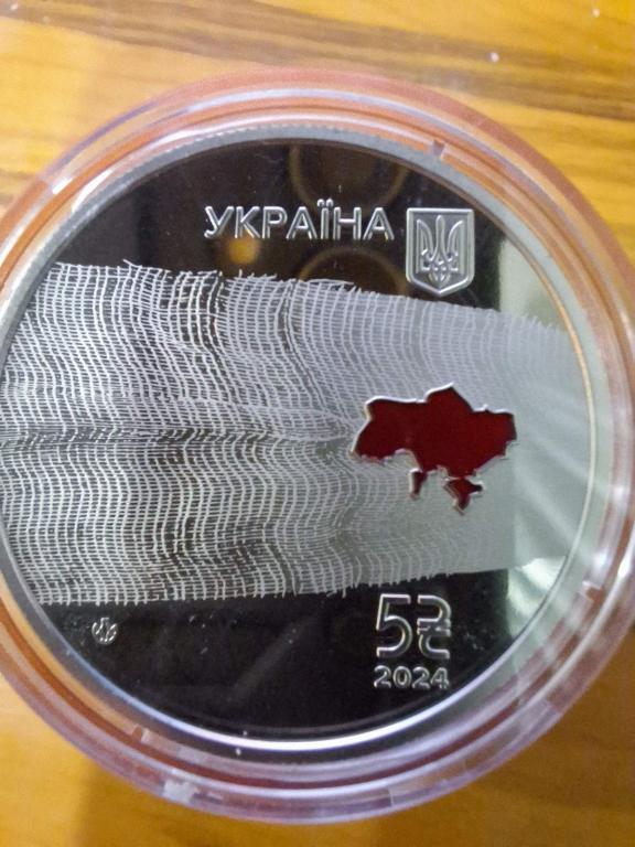 Під бинтом унизу праворуч – номінал монети 5, графічний знак гривні