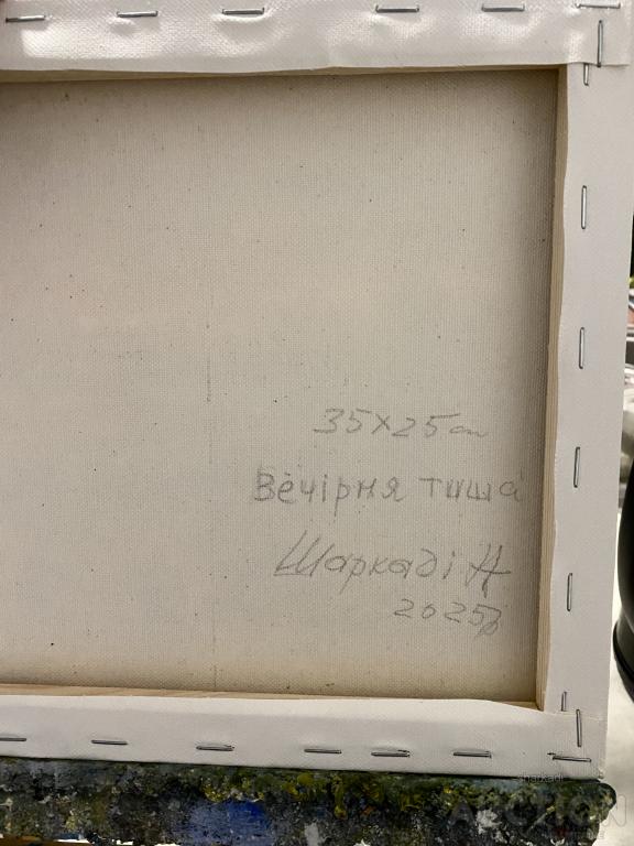 Картина написана на полотні з підрамником, олійними фарбами. Автор твору Шаркаді Н. Розмір 25х35см.