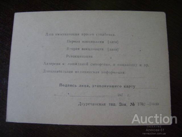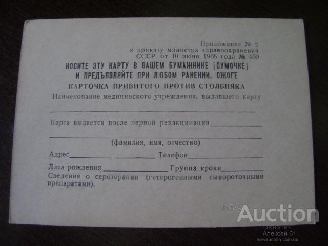 Карта привитого против столбняка