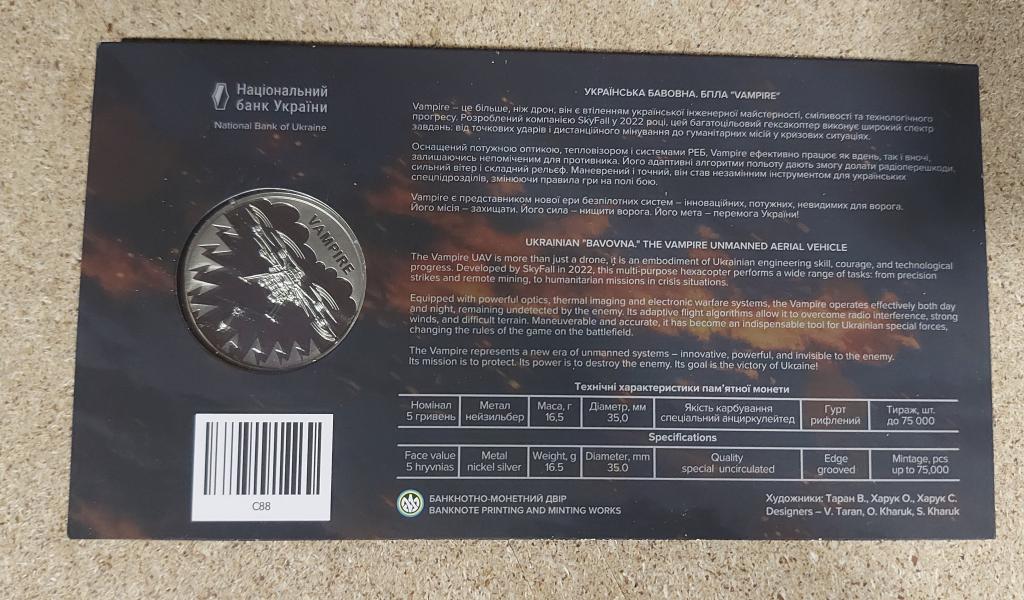 БПЛА вампір, монета з НБУ, в капсулі і блістері, капсула не скривалася.