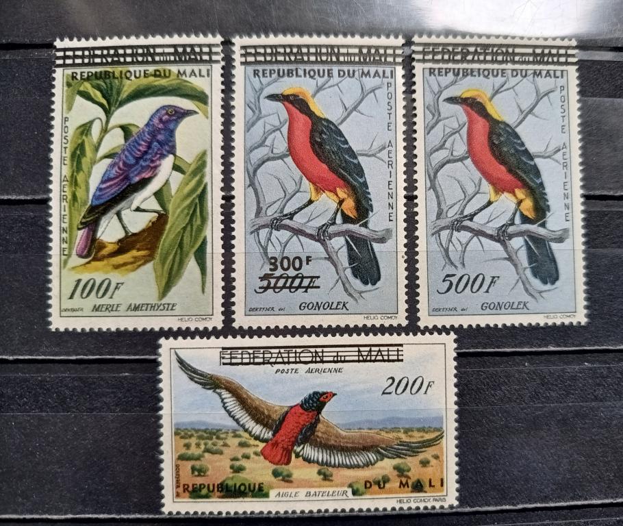 Птицы. Серия из 4 марок (с надпечатками), состояние отличное.